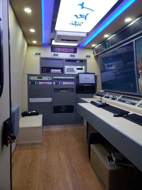 2018�9月,我公司中標封丘縣廣電傳媒服務中心電視直播車購置、改裝及車載設備采購項目,交貨期30個工作日。任務重,時間緊。從簽訂合同后,我們公司就組織了一個小組,專門來負責這個項目�11月中旬,一輛完美的依維柯電視轉播車開進了封丘縣廣電傳媒服務中心的大院內,受到了領導們的肯定�